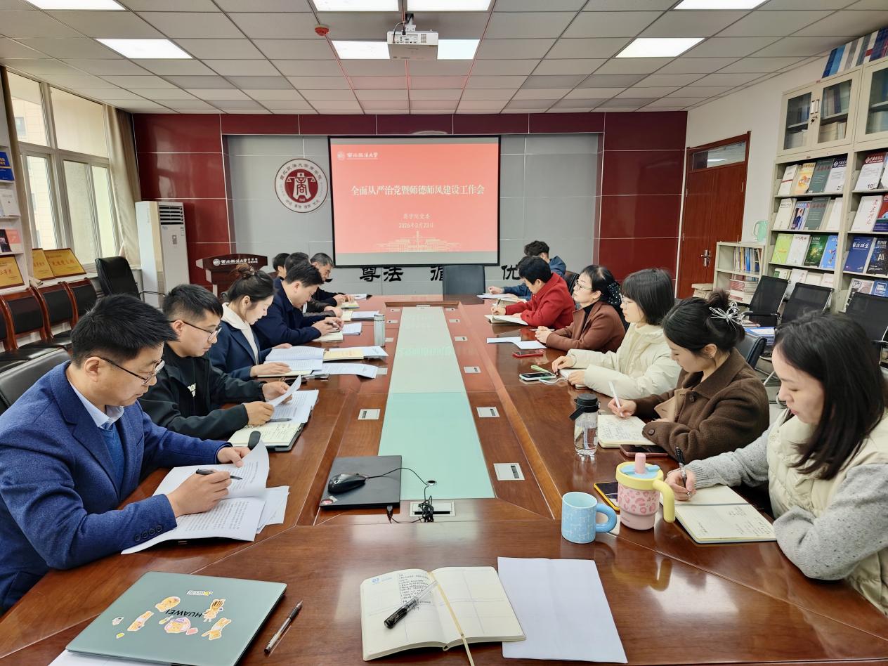 3月23日,禁漫岛 党委召开全面从严治党暨师德师风建设工作会,学院领导班子、行政人员、学工干部、各支部书记参加会议。