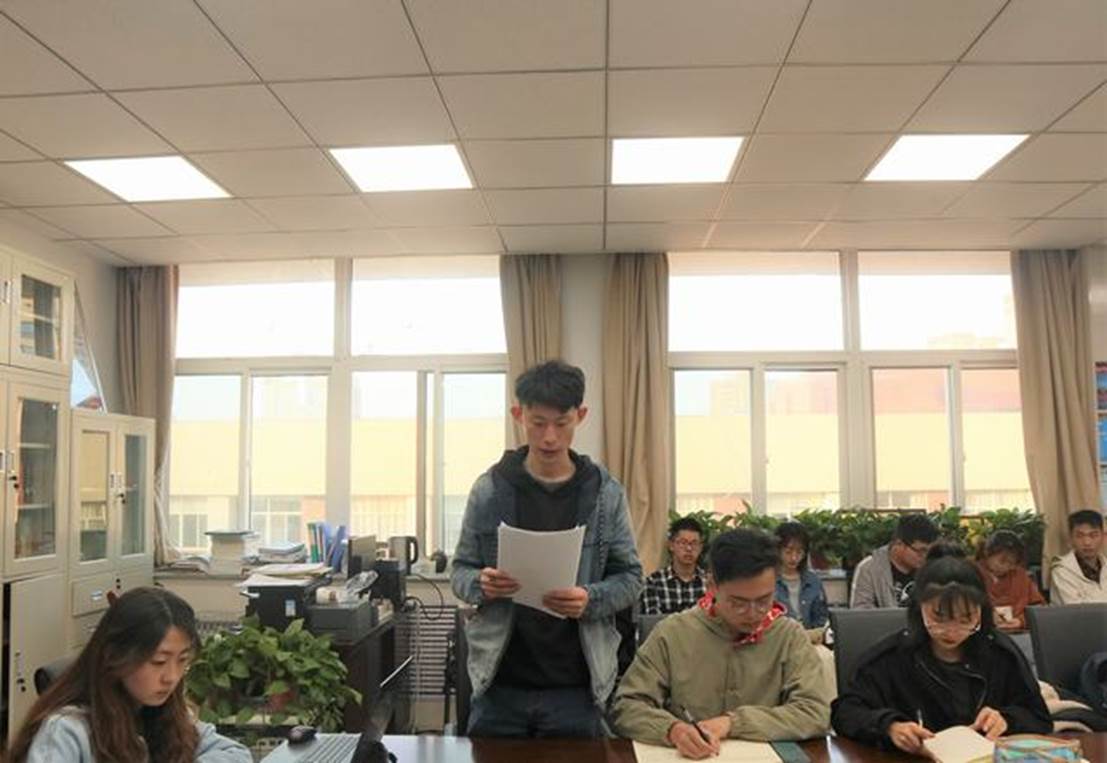 各学生代表发表学习见解。学生会主席陈映彤从国人应不忘初心、坚定文化自信等八方面做出阐述。结合自身实际表明:学生应规范自身行为,正确引导正能量传播,更重要的是国人应为自身自豪,为社会发展的各方面做出贡献。副主席王子康主要阐述了当代中国应在各方面落实党的领导和作为当代学生干部应有使命担当感。17级团支书张晓坤表示学生应提高个人认知,不断完善个人文化修养。