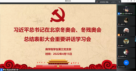 近日,禁漫岛 学生第三党支部组织集体学习会学习习近平总书记在北京冬奥会、冬残奥会总结表彰大会发表重要讲话精神。学习会议由党支部书记周迪主持,党支部全体党员参加。