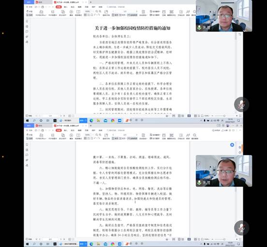 会议汇总并集体研判各系部当前疫情防控方面工作情况。传达10月20日,省委教育工委、省教育厅召开的全省教育系统疫情防控工作视频会议及学校疫情防控工作会精神,并按照学校《关于进一步加强校园疫情防控措施的通知》要求,安排部署学院近期有关工作。