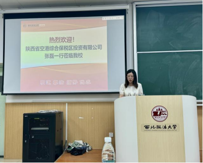 讲座正式开始前,冯颖副院长代表学院对陕西省空港综合保税区投资有限公司张磊总经理一行人员的莅临表示热烈欢迎,并简要介绍了学院的基本情况。