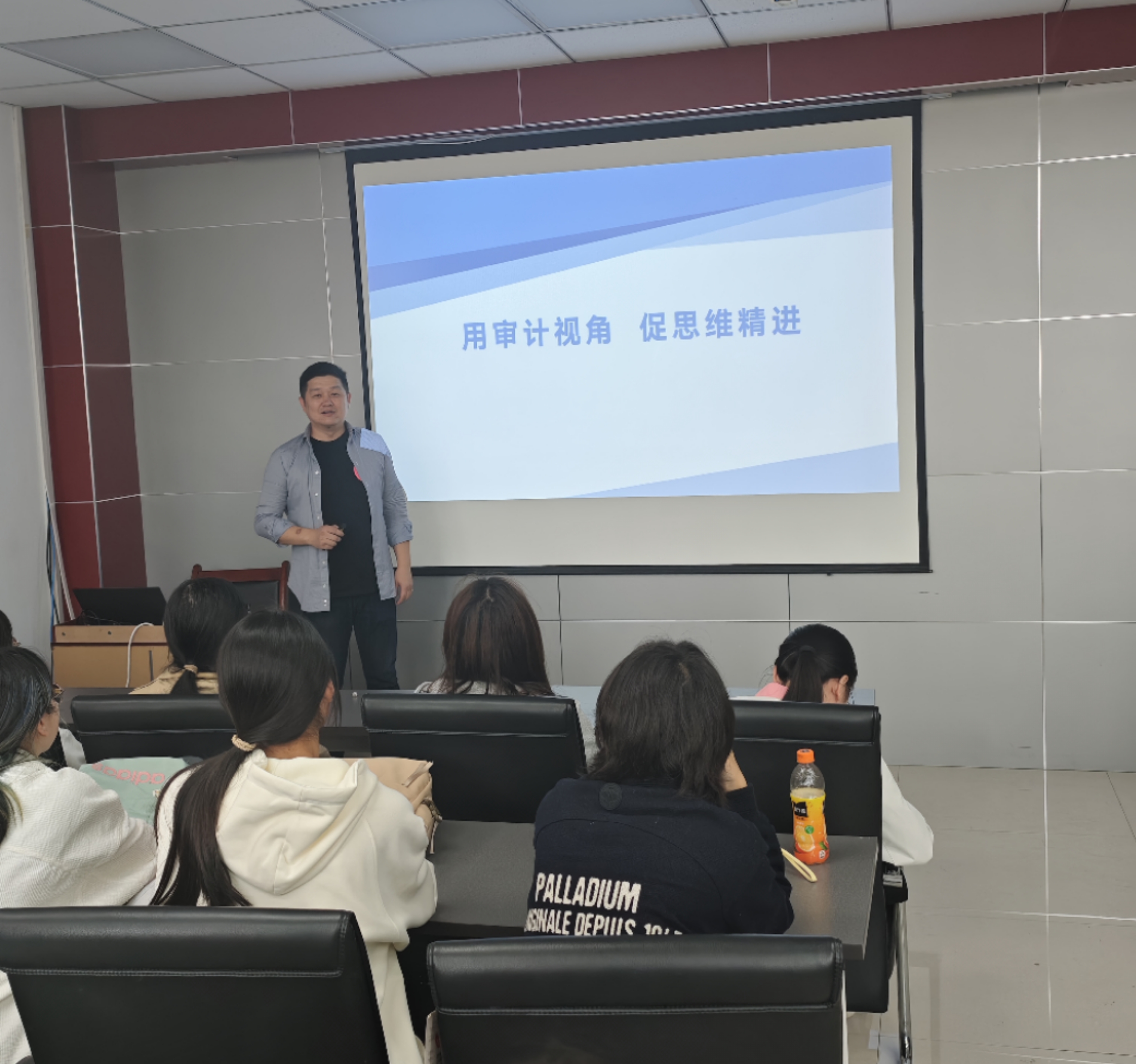 刘政老师以其深厚的学术底蕴和丰富的实践经验,为同学们带来了一场思维盛宴。他从积累知识的重要性及方法、做事先做人的常识、逆向思维对突破胆识的积极作用,以及审计视角与思维精进之间的紧密联系四个方面,深入浅出地进行了阐述。