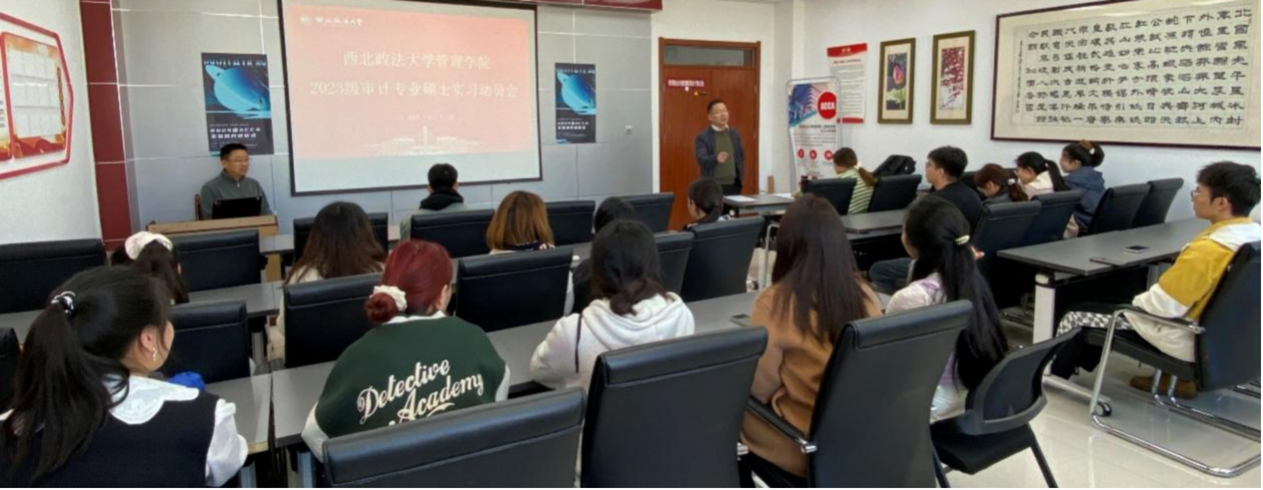 动员会上,刘维政老师传达了学院关于2023级审计专硕研究生实习安排的会议精神。安排部署了2023级审计专硕实践锻炼学习工作,详细介绍了实习单位的情况等,对实习考核管理等具体事宜进行了详细说明。要求同学们严格执行相关规定,鼓励同学们积极参与实践锻炼,圆满完成本次实践锻炼学习工作。
