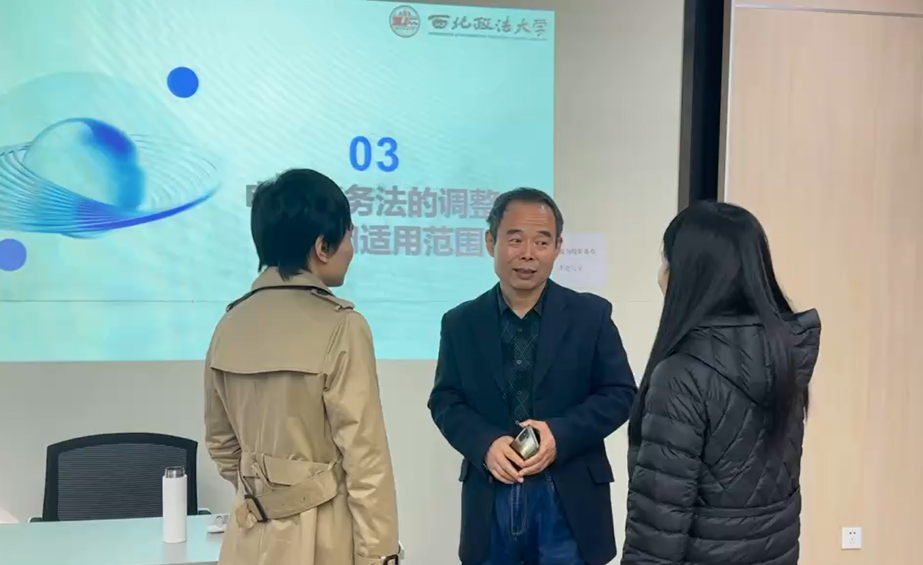 最后的交流环节,大家就电子商务法律法规的制度体系、教材编撰、典型案例、课程讲授、参考书目等问题踊跃提问,王老师用风趣幽默的语言一一作答,精彩的解答赢来了阵阵掌声。