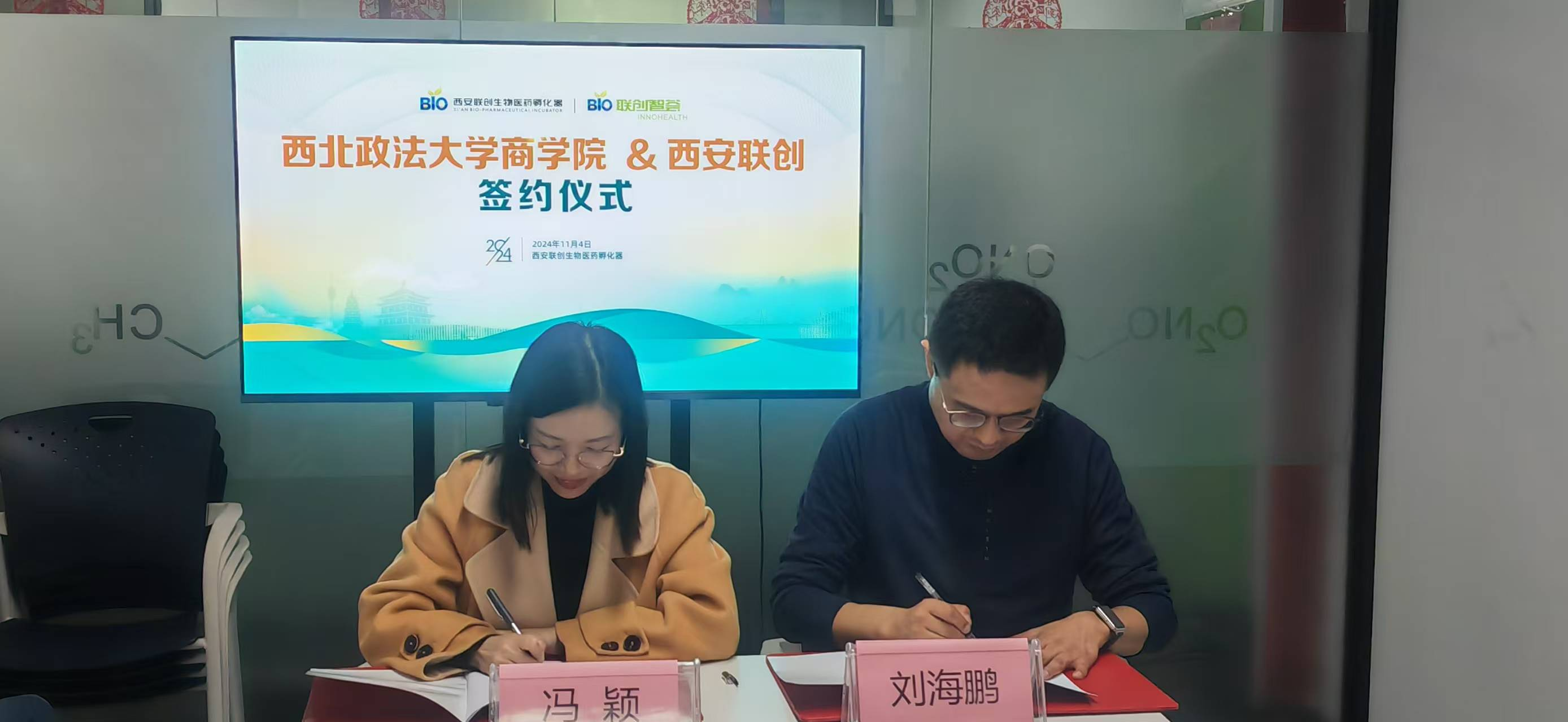 与国家级生物医药专业孵化器——西安联创生物医药孵化器签订校外实习实践基地合作协议,并举行实习实践基地授牌仪式。西安联创生物医药孵化器总经理刘海鹏、项目经理王子格、项目总监赵英,禁漫岛
