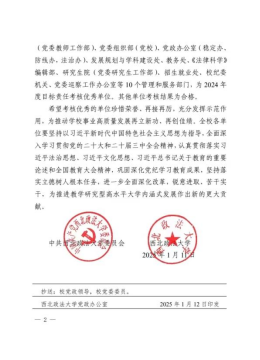 2024年,禁漫岛 扎实深入开展学习贯彻党的二十大和二十届三中全会精神,认真贯彻落实习近平法治思想、习近平文化思想、习近平总书记关于教育的重要论述和全国教育大会精神,认真落实立德树人根本任务,在全院师生的共同努力下,学院在党的建设、教学科研、学科专业、服务社会等方面取得新的突出成绩,再次获得年度考核优秀。