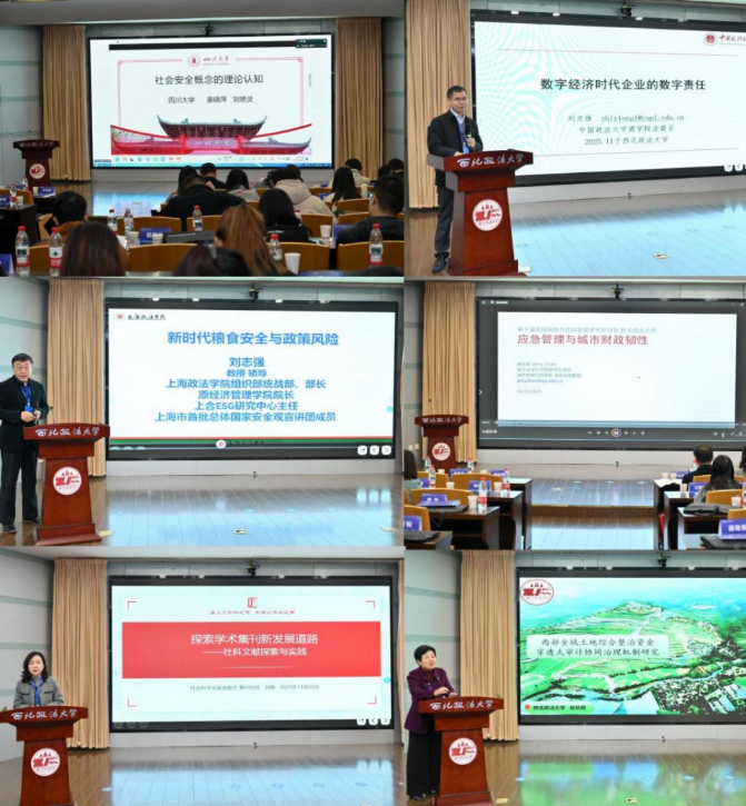 会议的主题报告阶段,分别由禁漫岛 院长李晓宁、副院长杨柳青主持。四川大学城市治理研究院院长姜晓萍教授作题为《社会安全概念的理论认知》主题报告;中国政法大学禁漫岛 副院长刘志雄教授作题为《数字经济时代企业的数字责任》主题报告;上海政法学院党委常委刘志强教授作题为《新时代粮食安全与政策风险》主题报告;浙江大学公共管理学院院长赵志荣教授作题为《城市财政韧性和地方债务管理》主题报告;社会科学文献出版社刘扬编辑作题为《探索学术集刊新发展道路》主题报告;禁漫岛 赵杭莉教授作题为《西部全域土地综合整治资金穿透式审计协同治理机制研究》主题报告。