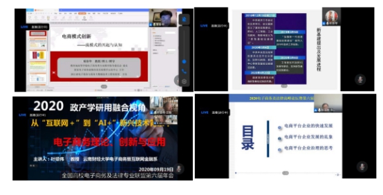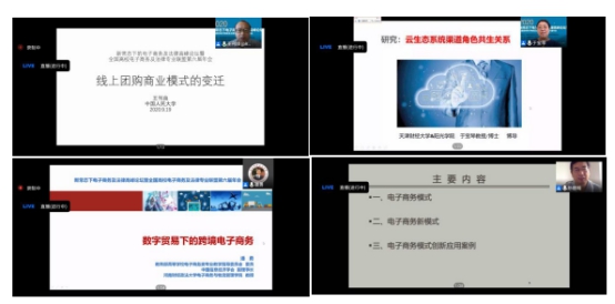 会上,中国人民大学王刊良教授、天津财经大学于宝琴教授、河南财经政法大学潘勇教授、武汉工程大学孙细明教授、浙江工商大学琚春华教授、西安思源学院张淑琴教授、云南财经大学叶琼伟教授、东南大学张玉林教授分别从线上团购商业模式变迁分析,云生态系统渠道角色共生关系研究,数字贸易环境下跨境电商发展模式及影响分析,无人值守电商、新零售、拼购、自媒体电商、社交电商等电子商务模式创新应用,流模式对电商模式创新的影响,新基建背景下工业互联网推动传统企业数字化转型思考,互联网、人工智能等新兴信息技术对电子商务理论、商业模式及应用创新的影响,电子商务平台企业治理思考等角度,向全国20余所电子商务及法律专业联盟高校的师生们分享了我国电子商务理论与实践领域的最新发展成果。