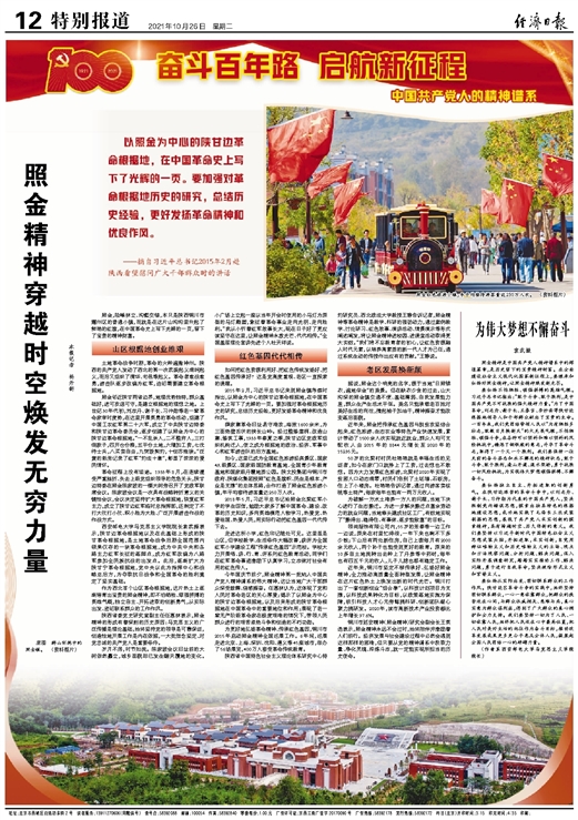 铜川市延安精神(照金精神)研究会副会长王英选表示,照金精神永远不会过时,始终陪伴并激励着人们前行。经济发展与社会建设过程中必然会遇到这样那样的困难,但只要从党的精神谱系中汲取力量、净化灵魂、淬炼斗志,就一定能实现所担当的历史使命。(经济日报记者 杨开新)