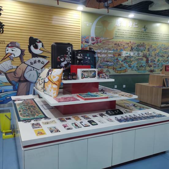 董事长刘德琳及公司党委王守贵书记亲切接待了到访人员。首先师生们参观了公司的产品展厅和工作室,刘德林董事长耐心为同学们讲解公司的发展历程、热门文创产品创作的想法、思路。从起家的“八百里秦川手绘地图”到最新的“唐潮诗仁”系列文创,董事长刘德琳将每件文创产品的文化底蕴和情怀故事娓娓道来,对每一件文创创作理念如数家珍。每一件产品都在讲述长安故事,践行着教化的潜默影响,同学们对文化和创意文化有了更深刻理解。