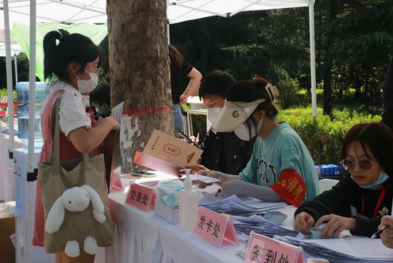 学院领导全程关注新生报到工作,期间多次前往报道摊位了解迎新工作进程、了解新生入校情况。