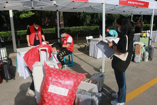 在迎新点,学院学生党员积极发挥先锋模范作用,积极加入到迎新报到注册、接待、发放新生大礼包等工作中。