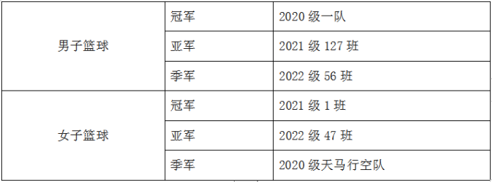 经过激烈角逐,本届“迎新杯”篮球赛总名次如下: