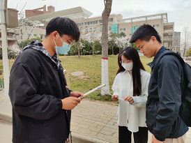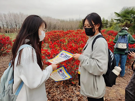 随后,大家走出教室,在校园里发放文明消费宣传单,诠释文明健康消费理念,号召校园广大消费者从自我做起,投身文明消费行动。同时还与大学生们进行了交流互动,让同学们分享自己的维权案例与心得。