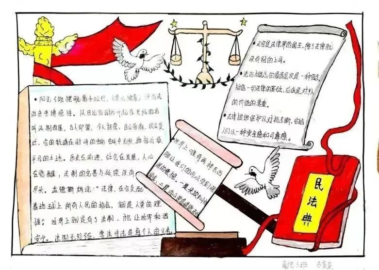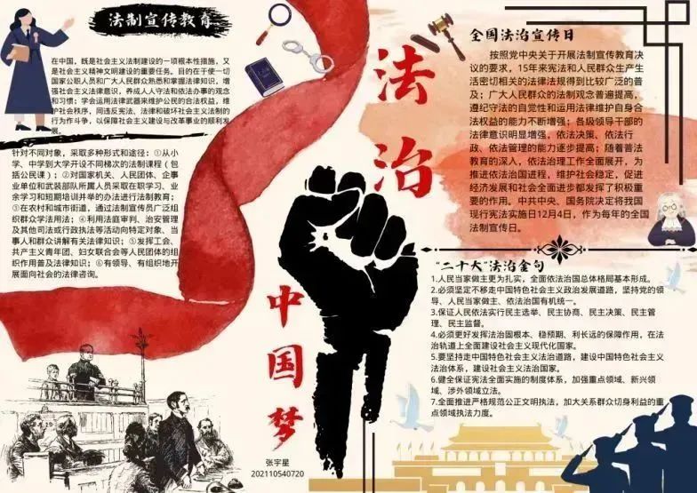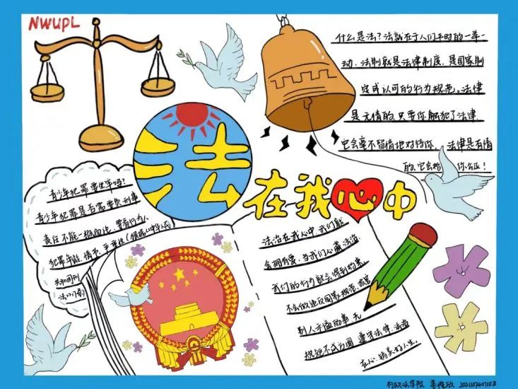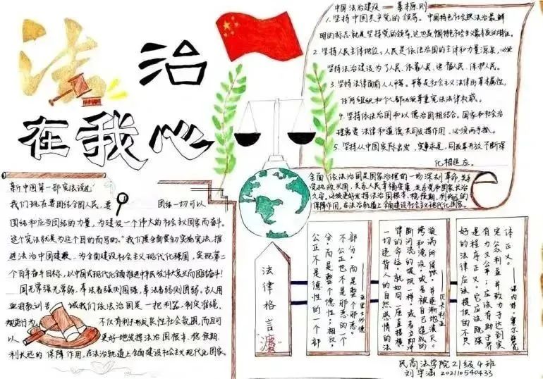 为积极响应加快“一站式”学生社区建设的工作要求,增强学生法治观念,提升学生法律知识水平,长安校区3号学生宿舍楼举办“法治在我心”主题手抄报比赛。本次比赛分为纸质版手抄报评比和电子版手抄报评比,共收到28幅纸质版作品和25幅电子版作品。以下是获奖作品展示: