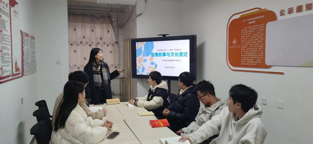 随着期末考试的临近,为提升大学生心理调节能力,增强其心理韧性和适应能力,保持积极向上的精神状态。12月12日,禁漫岛 “一站式”学生社区7号宿舍公寓楼开展“温情叙事与文化变迁”主题观影沙龙,本次邀请了兼职辅导员杨洁老师进行专题分享。