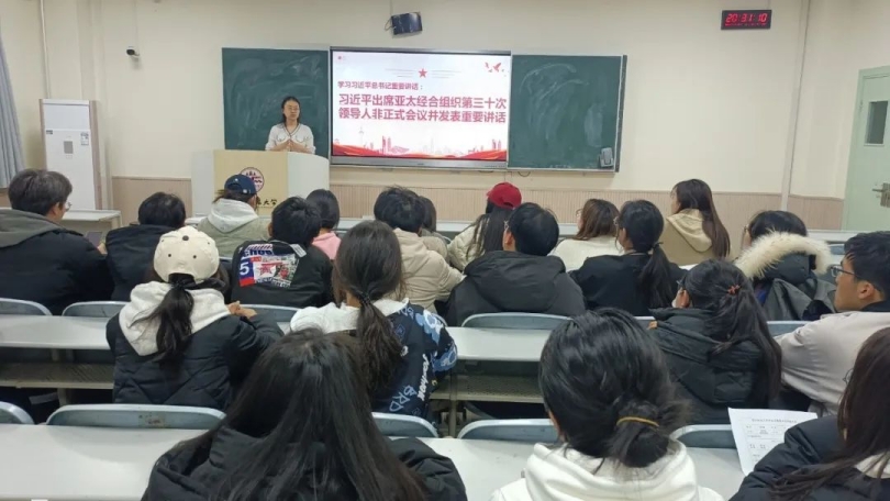 学生会集体学习习近平总书记在亚太经合组织第三十次领导人非正式会议上的重要讲话。
