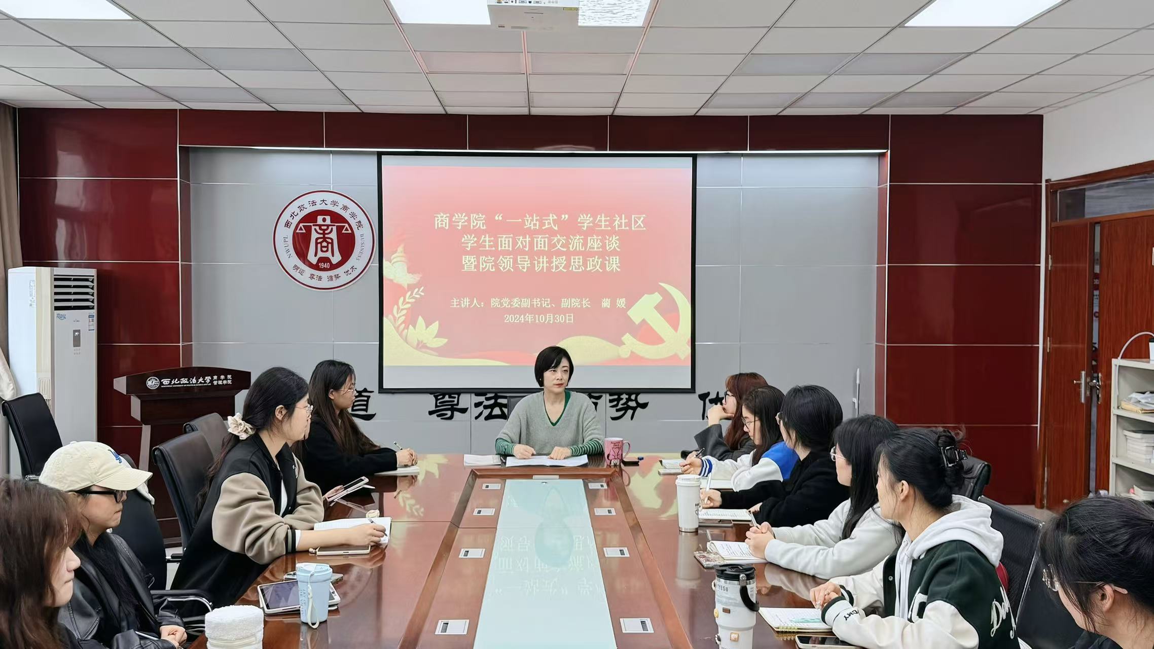 开展与学生面对面交流座谈暨院领导讲授思政课,学院党委副书记蔺媛,2022级辅导员蔡冰冰及社区学生代表参加,活动由辅导员蔡冰冰主持。