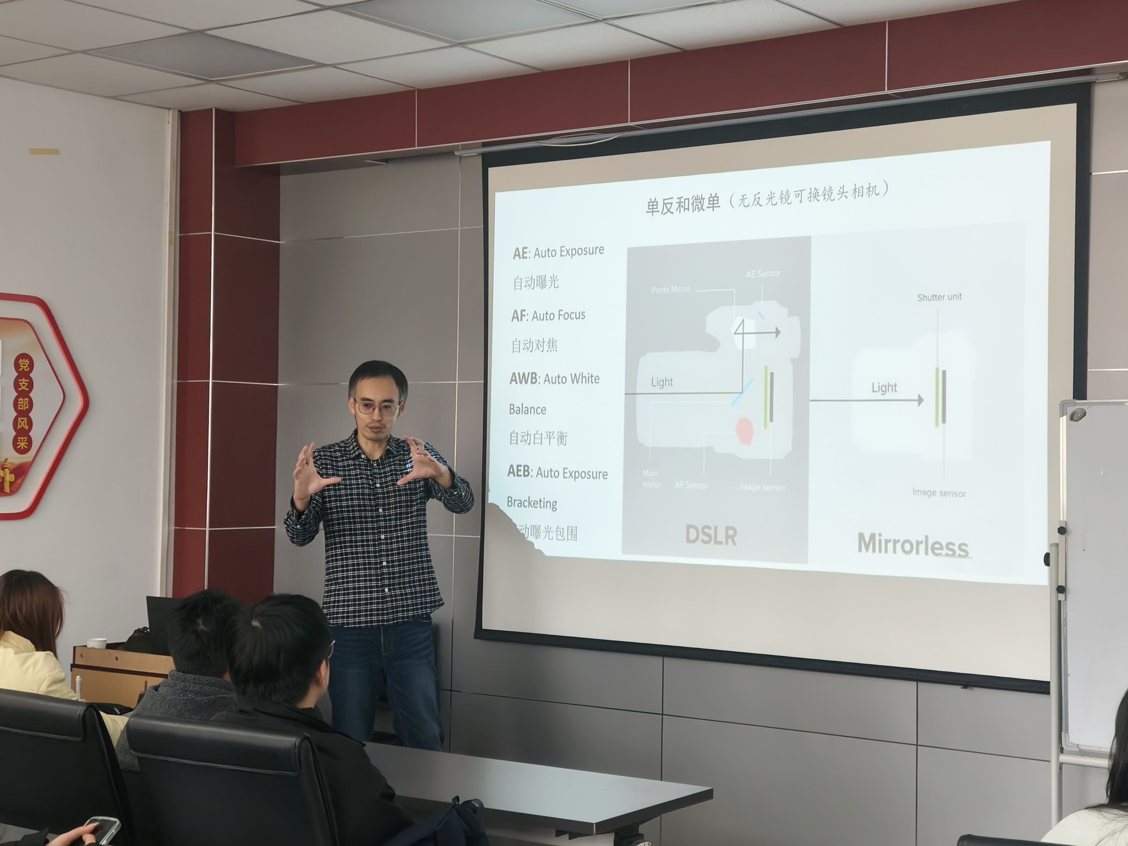 袁博老师首先以相机基础为切入点,针对镜头、光圈、快门等核心部件逐一进行解析,并阐释其协同工作的原理,坚实同学们的摄影基础。随后,袁博老师针对相机快门速度、感光度等关键要素展开详细讲解。他借助实际操作,着重讲述如何通过调节参数达到理想的曝光效果,同时强调拍摄远景时巧妙运用放大效果的重要性。此外,袁博老师指出,从裁剪到图片合成,后期处理不仅仅技术层面的操作,更是情感与创意的延伸。