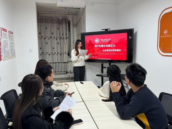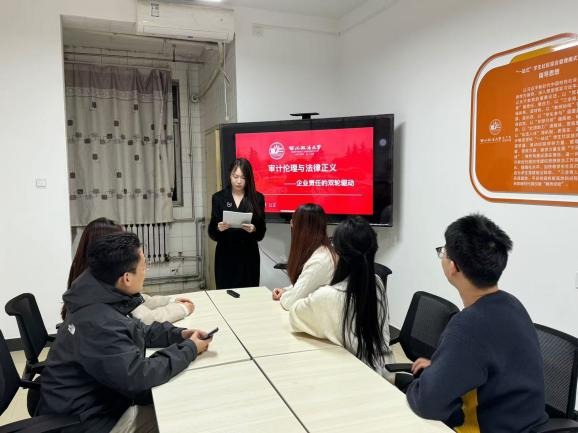 “一站式”学生社区举办第50期“法商”沙龙活动,此次沙龙以“审计伦理与法律正义——企业责任的双轮驱动”为主题,由2022级研究生李笑迎担任主讲,2022级研究生张鹤千主持。