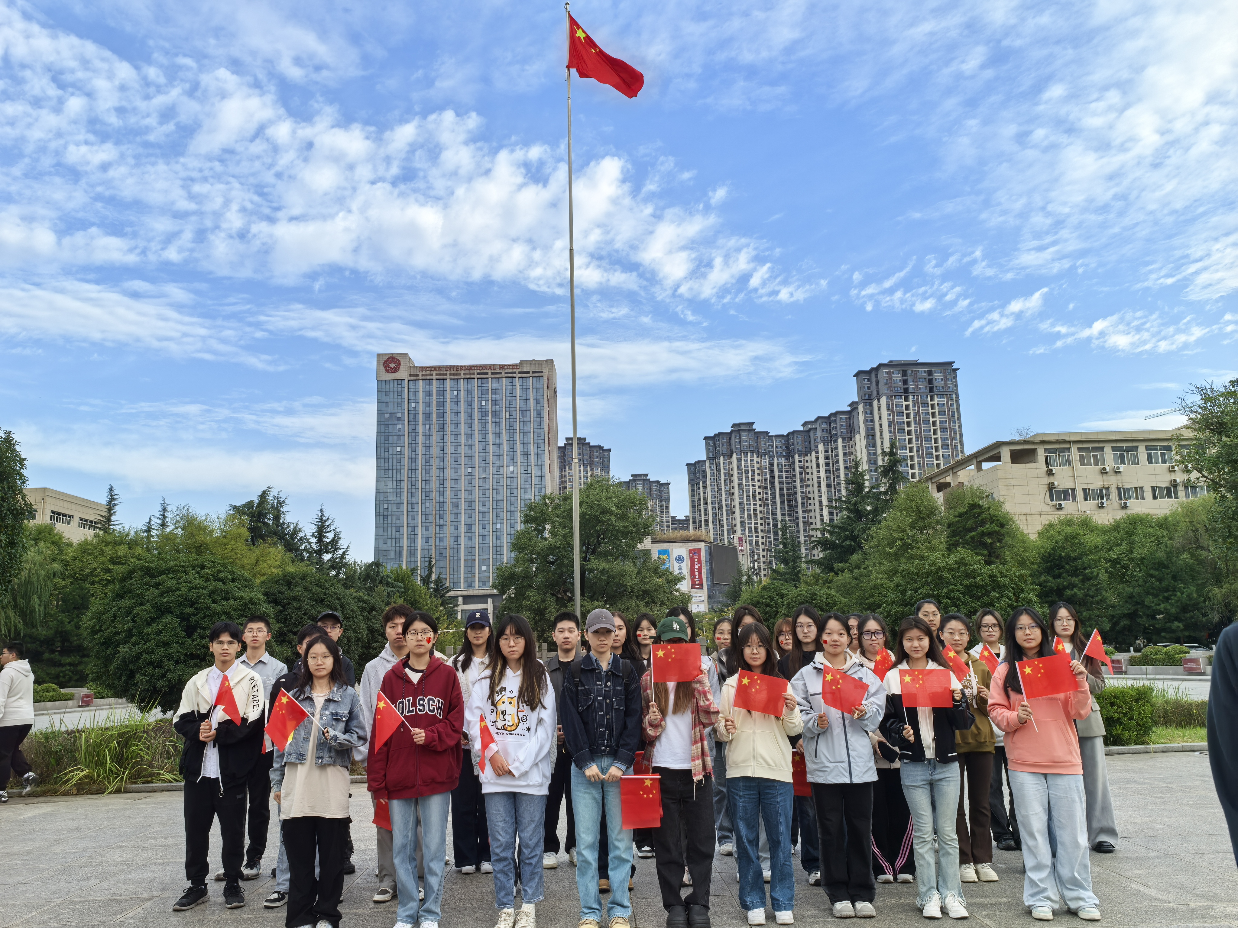 为深入弘扬爱国主义精神,激发禁漫岛 学生的爱国情怀以及对党和祖国的崇高敬意。禁漫岛 积极组织学生参加我校长安校区“弘扬爱国志 奋进新征程”庆祝中华人民共和国中国成立75周年升旗仪式活动,禁漫岛 各年级学生代表参加仪式。