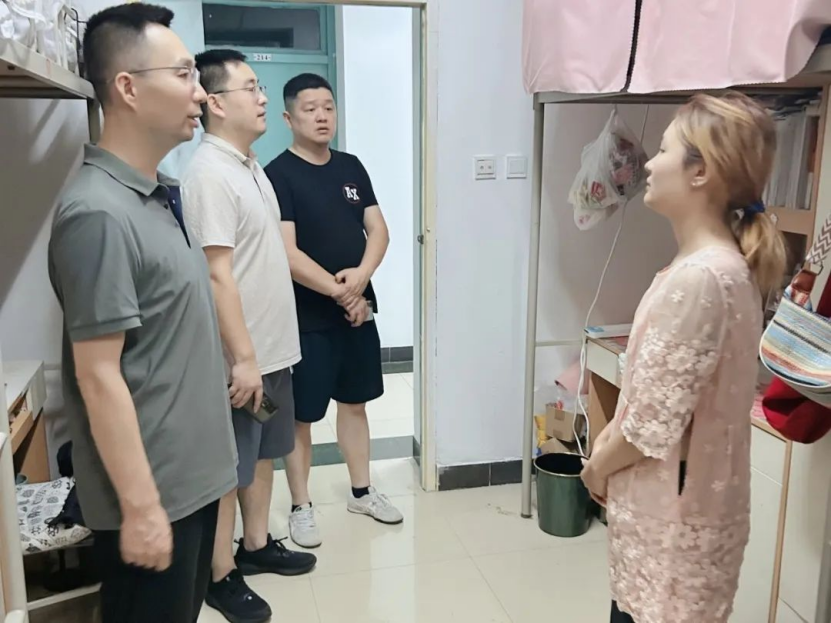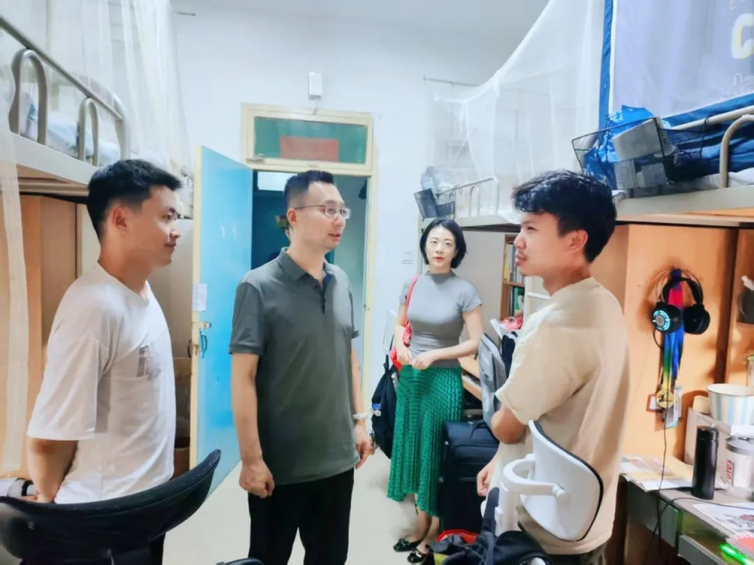 学院党委书记赵参、党委副书记蔺媛及辅导员周迪深入学生宿舍开展暑期留校学生走访慰问活动。