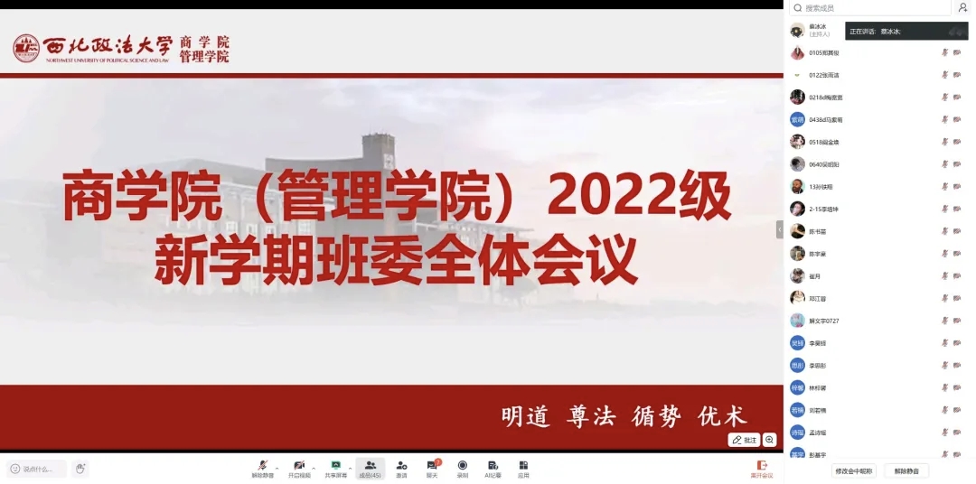 会议传达了学校关于安全稳定工作的相关要求,围绕健康管理、安全教育、矛盾纠纷排查、校外租住学生管理及研究生教育管理等重点工作进行部署。会议强调,班干部要绷紧安全弦,密切关注同学身心健康,及时发现并报告安全隐患,协助做好信息收集与政策宣传;要加强与校外租住学生的联系,确保管理服务不断线;要关注研究生思想动态和学业压力,配合学院做好教育管理服务。会议要求,班干部要带头表率,在学习生活中以身作则,严守校纪,带动优良班风;要提升能力,强化沟通协调与应急处置,当好师生桥梁;要深入同学,主动倾听诉求,及时反馈需求,将服务落到实处。