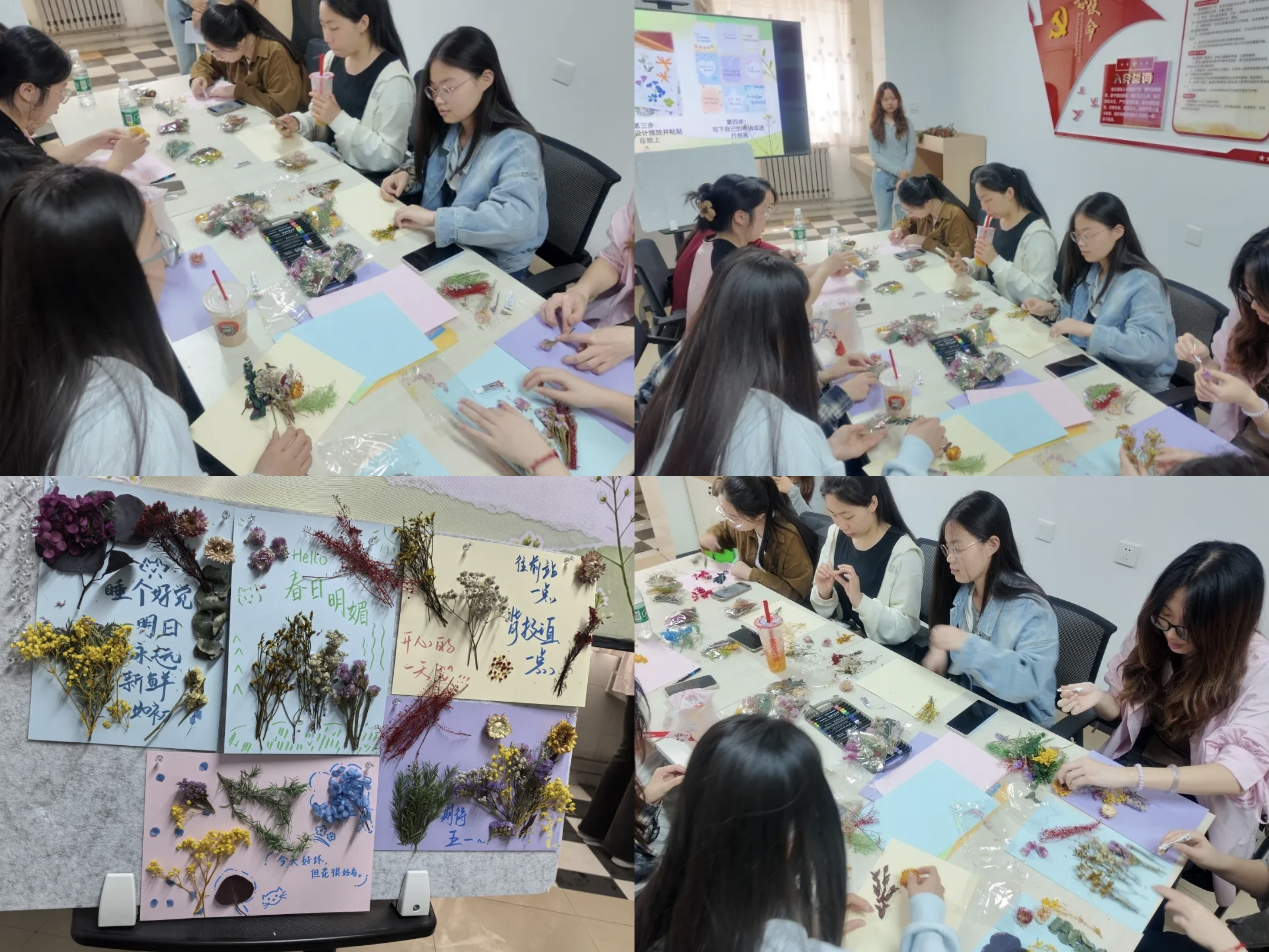 为舒缓大学生心理压力,传递自然疗愈之力,4月24日,禁漫岛 “商苑”工作室在“一站式”学生社区举办“草木心语 拼贴春光”心理主题活动。本次活动以自然与艺术为载体,引导学生在动手创作中释放压力、舒缓身心,在春光里实现自我治愈。