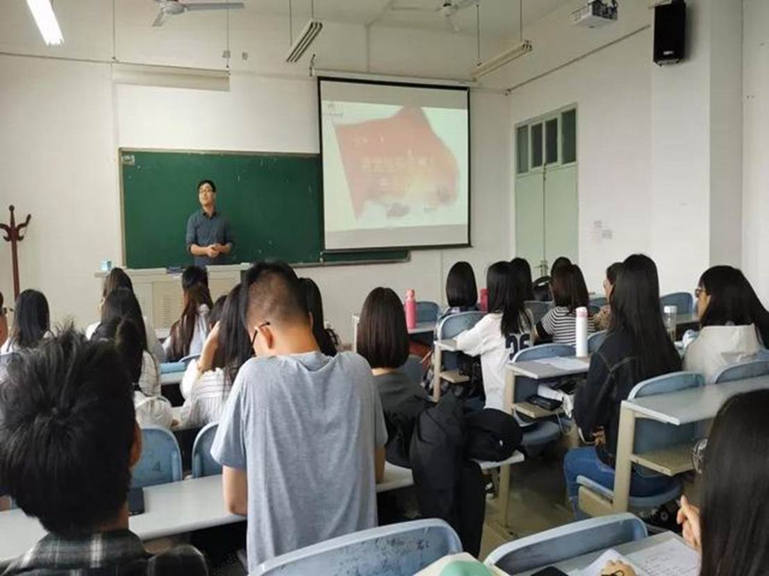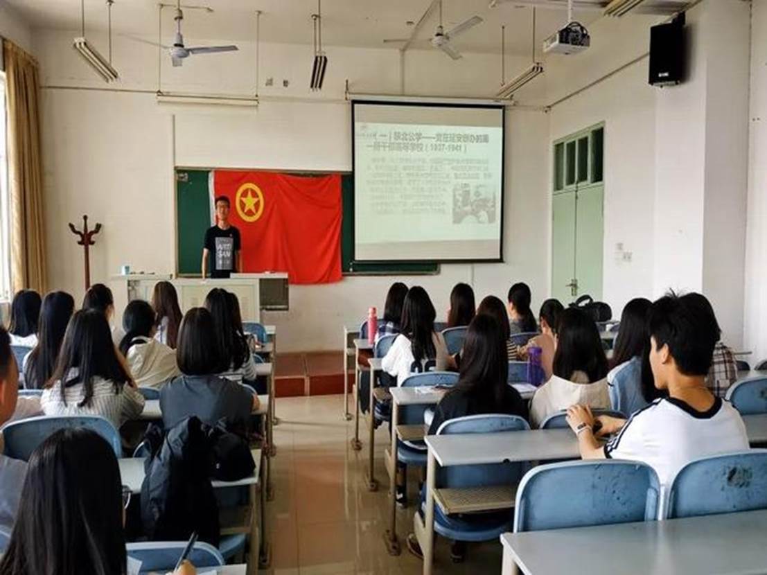 第二项:青年教师代表刘维政讲授微团课。2018级兼职辅导员刘维政老师为同学们带来了精彩的“纪念五四运动100周年”主题微团课。他深入浅出的剖析了我们从哪里走来,什么是“延安精神”,青年学生与新时代有什么关系等问题,希望同学们能从方向、思想、价值、创新四个方面深刻体会“延安精神”内涵,把“听党话,跟党走”作为人生法宝,找准方向,收获青春,收获成功。