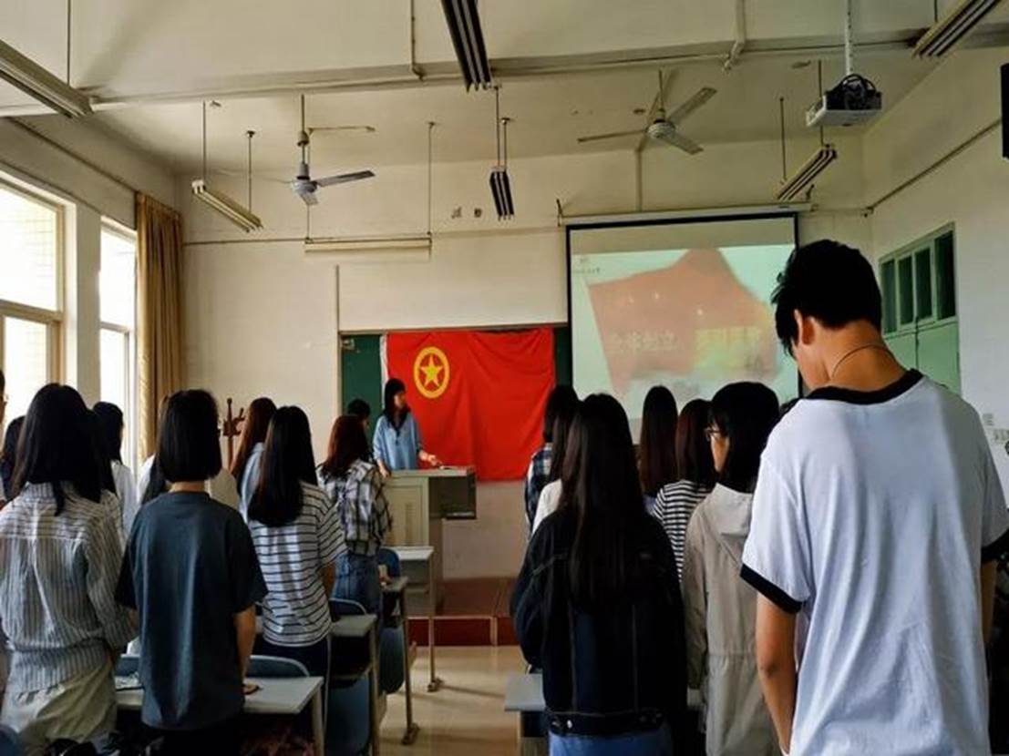 16时30分整,团日活动在雄壮的国歌声中正式开始。