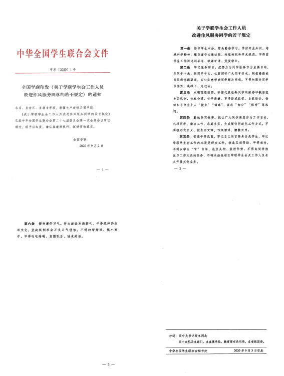 以下为关于学联学生会工作人员改进作风服务同学的若干规定具体内容: