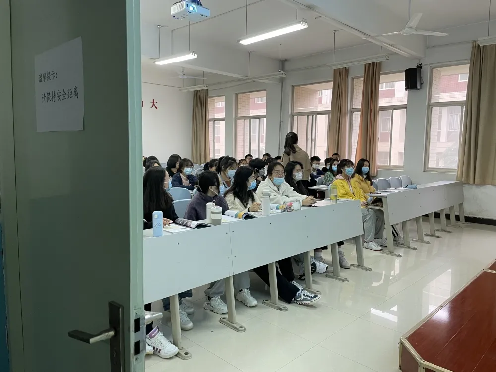 为促进学风建设,督促学生认真学习,在走访学生宿舍活动结束后,学院全体学工干部又巡查了学生课堂,了解各班到课情况、课堂纪律等。利用课间,大家进入课堂,向同学们强调了近期学校疫情防控的工作要求,提醒大家在课堂、食堂等公共场所要佩戴好口罩,做好个人防护。
