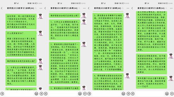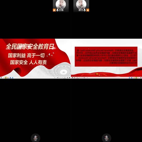 各年级组织学生召开主题班会。通过班会向学生介绍了国家安全日设立的由来,并向同学们生动地说明树立国家安全观的重要性。还向同学们列举了国家安全的相关事例,提醒同学们应注意疫情自我防护、食品卫生安全、警惕国际间谍防止泄露国家安全信息。