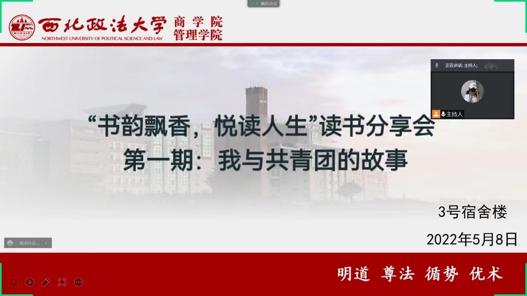 100年来,一代代青年在五四精神感召下,壮志满怀地拼搏奋斗,在战火纷飞的革命岁月抛头颅、洒热血,在如火如荼的建设年代忘我劳动、艰苦创业,在波澜壮阔的改革开放时期勇立潮头、勇挑重担,谱写了一曲曲激昂澎湃的青春华章。为了让青年们在青春的赛道上跑出当代青年最好的成绩,用实际行动践行“请党放心,强国有我”的青春誓言,并以优异的成绩迎接党的二十大和省第十二次党代会胜利召开。5月8日上午,3号宿舍楼开展线上“我与共青团的故事”交流分享会,由三号宿舍公寓楼工作站站长覃思颖主持。5名分享人、其他楼层宿舍代表参加本期分享会。