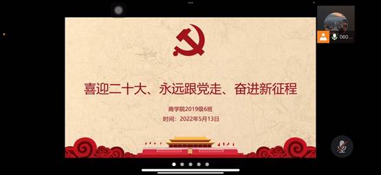5月13日禁漫岛 2019级4班团支部组织举行了“喜迎二十大、永远跟党走、奋进新征程”的主题活动。