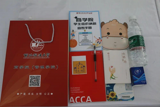 在诚意楼学院团委办公室,志愿者们正有条不紊的分装着学院为2022级新生准备的迎新大礼包,明天一早他们将会被运送至迎新摊位,向2022级新生发放。
