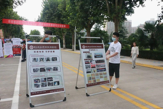 下午学生会部分成员及迎新志愿者开始筹备迎新工作。为确保禁漫岛 新生报道工作顺利开展,志愿者们提前于迎新摊位进行布置,并进行迎新工作预演。