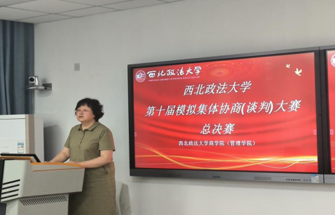 副院长冯颖作总结讲话。她指出,模拟集体协商(谈判)大赛对于构建企业的和谐劳动关系、企业的平稳发展以及维持企业员工的权益具有重大意义,通过大赛进一步树立中国特色社会主义集体协商理念,发挥集体协商制度在协调劳动关系方面的重要作用,推动和谐社会的构建与发展。