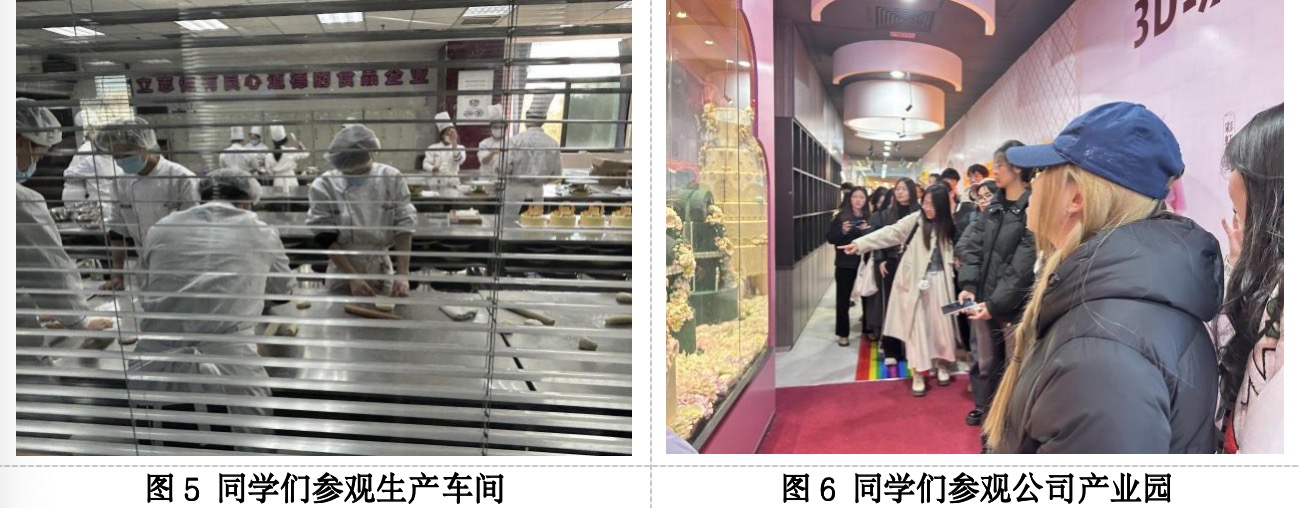 随后,全体师生参观对公司的生产车间进行参观。工作人员就烘焙食品的生产流程,从原材料的筛选、配比,到面团的搅拌、发酵,再到烘焙、装饰等各个环节进行讲解,展示了御品轩在确保产品质量和口感方面的严格把控,加深了同学们对食品生产管理的认识。