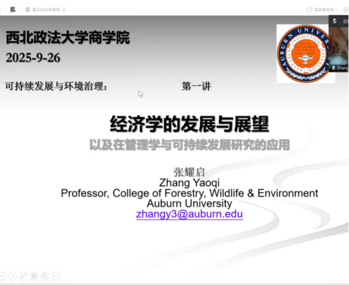 9月26日上午,美国奥本大学(Auburn University)张耀启教授为禁漫岛 师生开展可持续发展与环境治理系列学术讲座第一讲,讲座主题为“经济学的发展与展望”,副院长冯颖主持,全体研究生及教师参与讲座。