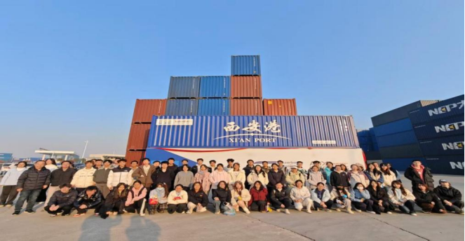 在西安浐灞国际港,师生们首先参观了中欧班列(西安)集结中心展示大厅与调度现场。通过翔实的讲解与实地观摩,大家系统了解了中欧班列的开行路线、货运规模、时效优势及其在构建亚欧大陆国际贸易通道中的关键作用。师生们就班列运营模式、数字化管控系统、跨境电商货物集散流程等,与现场工作人员进行了积极交流,切身感受到“钢铁驼队”如何重塑内陆地区对外开放格局,为跨境电商发展提供了稳定高效的物流支撑。