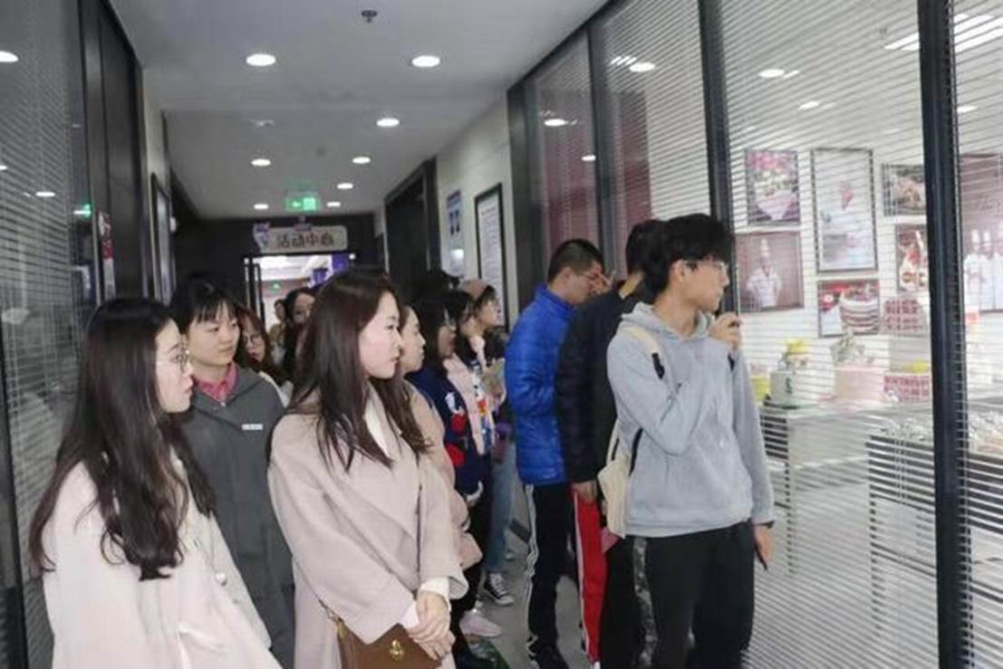 御品轩工厂负责人详细向同学们讲解工厂的运营模式,参观了研发团队和生产中心,生产线和文化墙。从配料区、搅拌区到面包成型区再到产品包装区,大家了解了食品生产的工序。根据文化墙上的图片以及讲解员的讲解,同学们了解了面包发展的历史和御品轩独树一帜的禁漫岛内涵和持续创新的企业工艺。