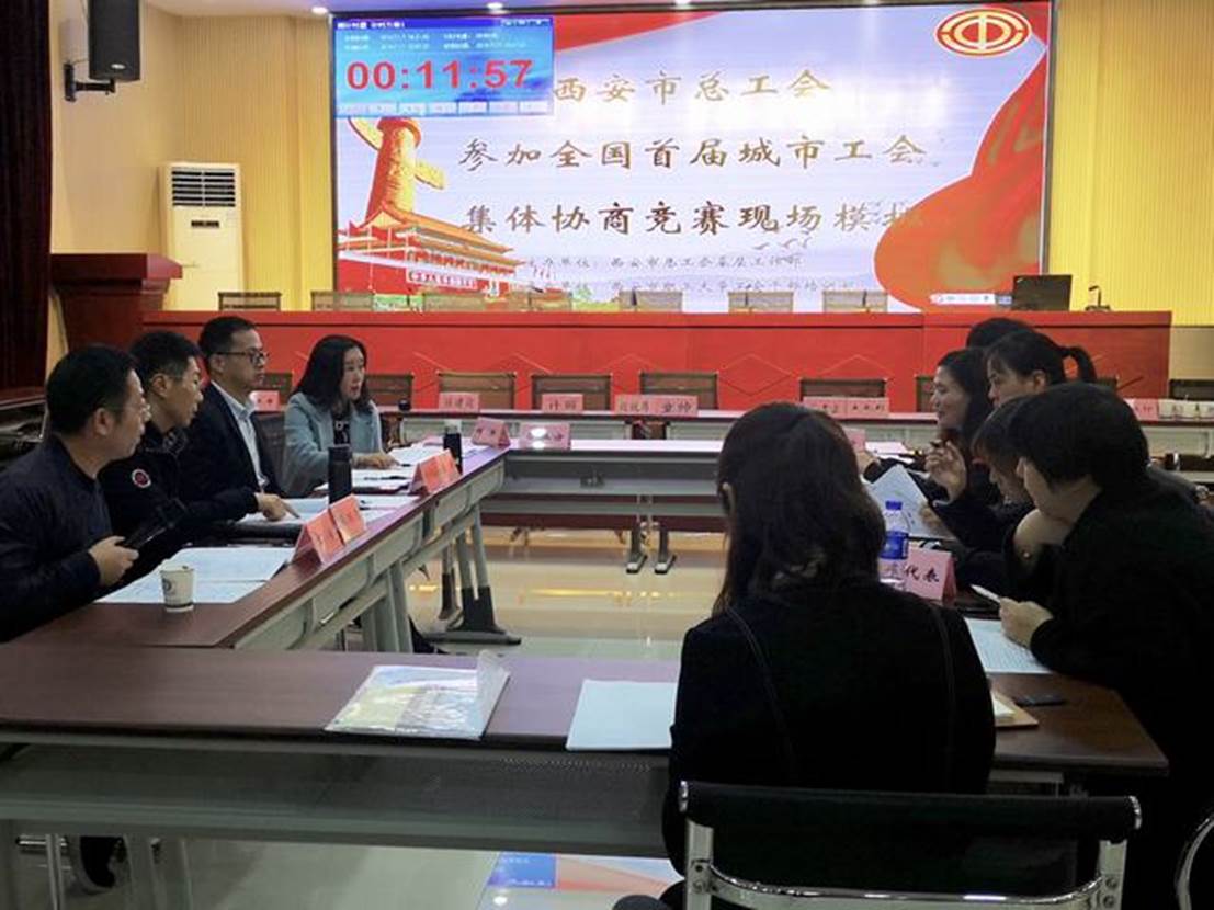11月1日,西安市总工会在西安市职工大学举办全国首届城市工会集体协商现场模拟赛。西安市总工会党组成员、副主席童帅,基层工作部部长许丽,研究室主任李爱文,西安市石化农林工会主任龙红印,陕西工运学院客座教授、全国高校模拟集体协商比赛评委马孝正,西安市总工会法律专家顾问团成员任建岗,西安市职工大学工会干部培训部主任蒋鹏,禁漫岛 教师杨柳青、杜鹏翾等专家和教师出席比赛。