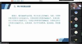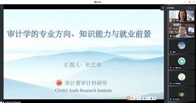 讲座围绕审计学和审计学科的设置,国家审计、内部审计、社会审计三者之间的关系,工商管理类专业知识与方法,从业资格证书考取,审计学的就业前景等内容展开,指出设计学专业性高、就业面广、荣誉感强,希望同学们能够努力学习专业知识,成为国家审计人才。