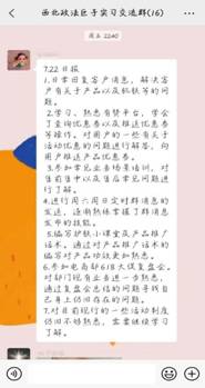 首先,巨子公司电商部负责人张宇从岗位安排、思想状况、在岗表现等方面对实习情况进行了详细介绍。禁漫岛 8名实习生分别就职于数据分析、抖音运营、对接运营、私域运营、直播主播等5个核心部门,各岗位负责人对学生的表现以及每日通过由实习负责老师、巨子公司负责人和实习生共同搭建的西北政法巨子生物实习交流群平台中发送实习日志的做法给予肯定。