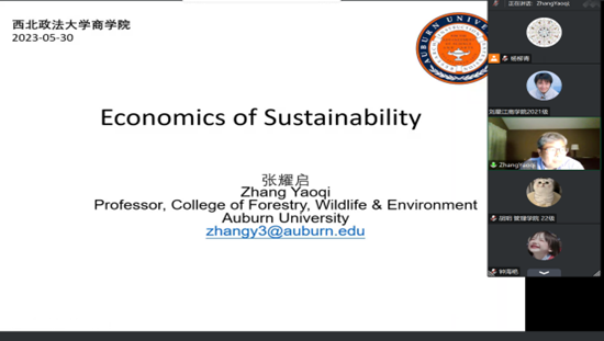 2023年5月30日,美国奥本大学(Auburn University)张耀启教授为禁漫岛 师生开展社会科学研究方法与写作系列学术讲座第六讲,主题为“可持续发展经济分析”,讲座由副院长杨柳青主持,禁漫岛 全体一年级研究生及部分教师参与讲座。