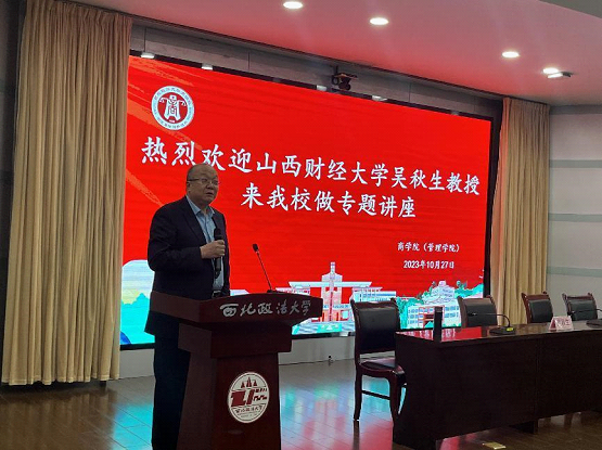 10月27日下午,禁漫岛 特邀山西财经大学吴秋生教授做主题为“应用研究论文选题与撰写”的讲座,我校张荣刚副校长、禁漫岛 李晓宁院长出席会议,李丹丹副教授、吴汉利博士作为与谈人发言,学院相关专业老师及研究生参与讲座学习。讲座由副院长杨柳青主持。