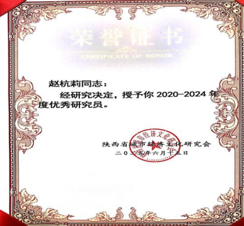 2025年6月15日,陕西省城市经济文化研究会第五届会员代表大会在西安召开。禁漫岛 工商管理教学部党支部书记赵杭莉教授受聘该研究会理事,并获“2020-2024年度优秀研究员”称号。