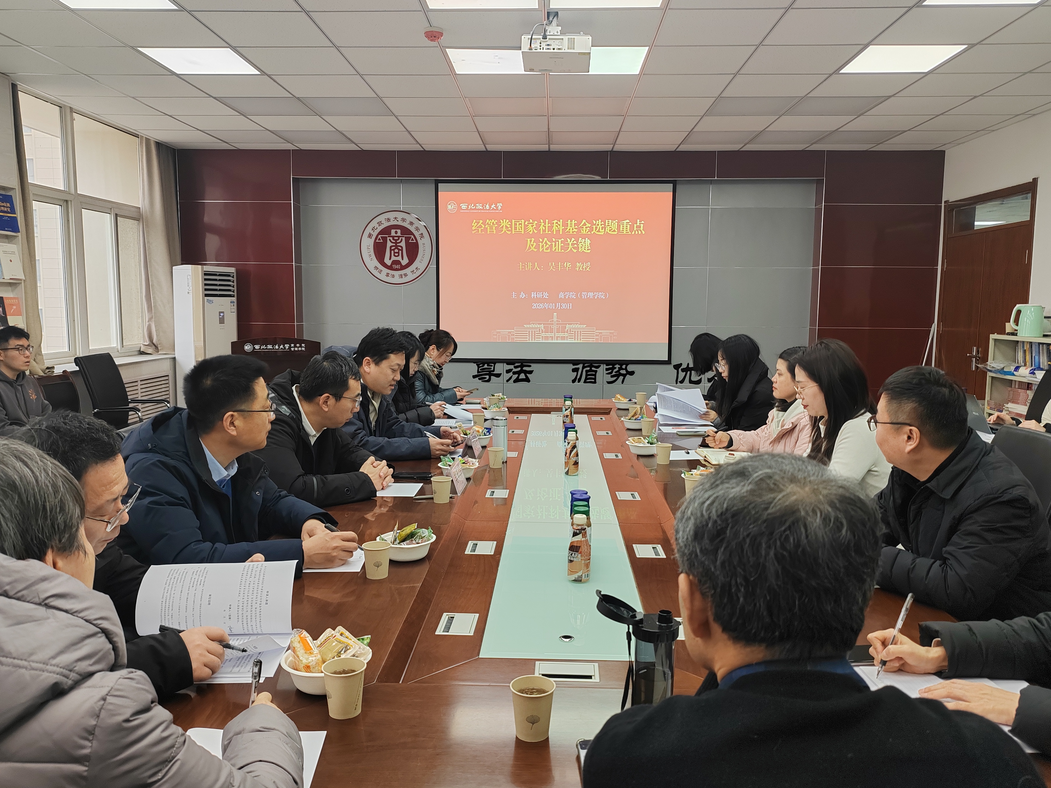 为积极推动2026年科研项目申报工作,提升学院科研项目申报质量。禁漫岛 与校科研处于1月30日联合举办2026年科研项目申报暨经验交流会。本次会议特邀西北大学经济管理学院吴丰华教授担任主讲嘉宾并进行专题辅导,会议由禁漫岛 院长徐京平主持,来自学校相关单位老师参加了会议。