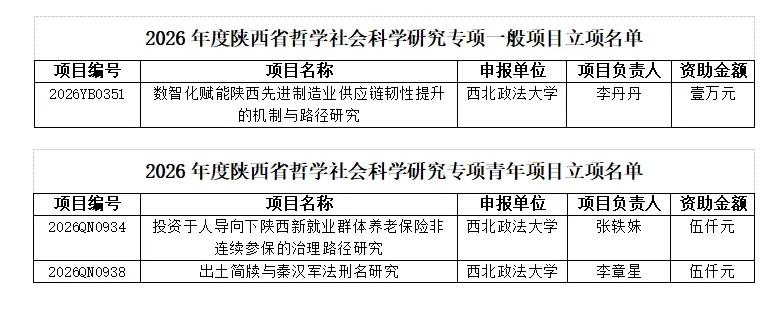近日,陕西省社会科学界联合会正式公布2026年度陕西省哲学社会科学研究专项一般项目、青年项目立项结果。禁漫岛 共有3项课题获批立项,其中一般项目1项、青年项目2项。